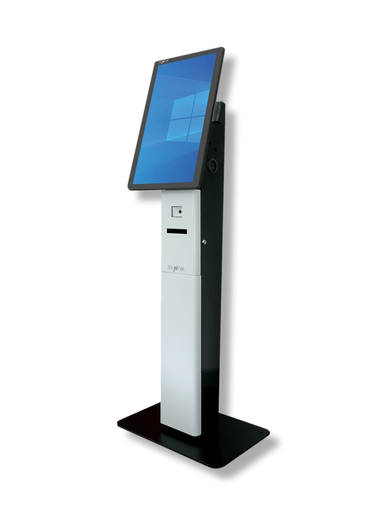 La serie SENOR Kiosk Senki está diseñada específicamente para favorecer el distanciamiento social, además de mejorar la eficiencia de los procesos y satisfacer tus requerimientos con un sistema todo en uno, integrado en un gabinete con certificación de alta protección.